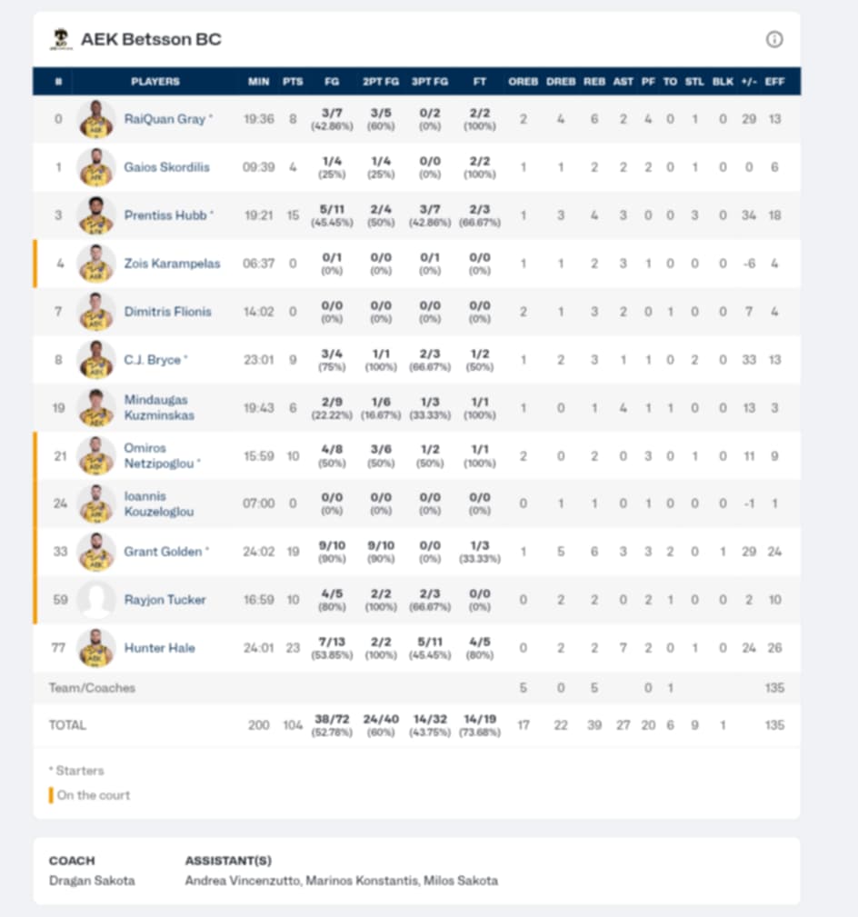 Ξεχώρισαν: Από την ΑΕΚ διακρίθηκε ο Γκόλντεν και Χαμπ με 19 και 15 πόντους αντίστοιχα. Από την Ναντέρ σκόραραν ο Τίλμαν και ο Ροντρίγκεζ με 17 και 15 πόντους