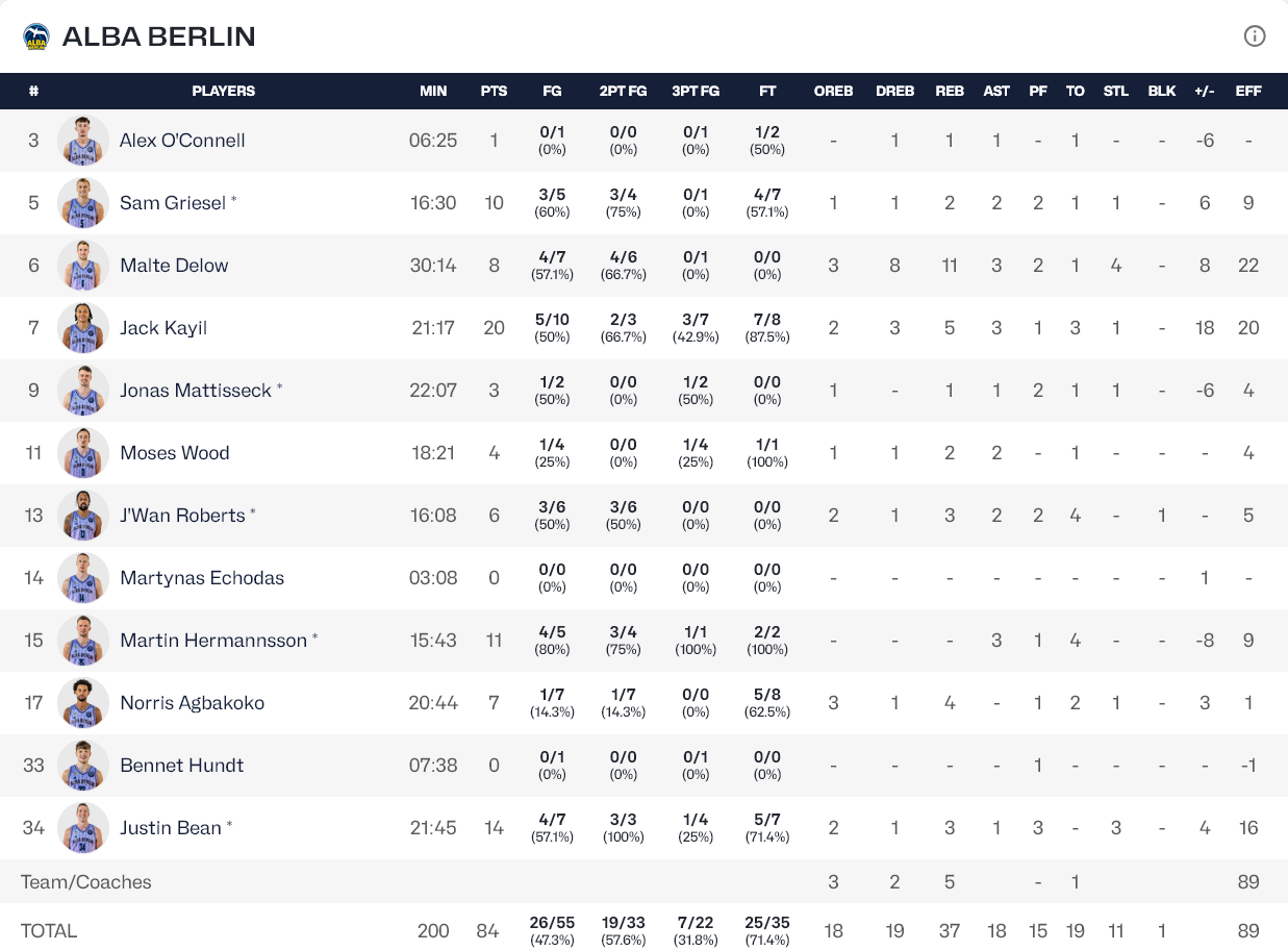Ξεχώρισαν: Για τους νικητές ο Μπιν με 14 πόντους, ενώ για τους Θεσσαλούς οι Τζέφερσον 23 πόντους και 7 ασσίστ και ο διπλός Χόρχλερ με 17 πόντους και 10 ριμπάουντ.