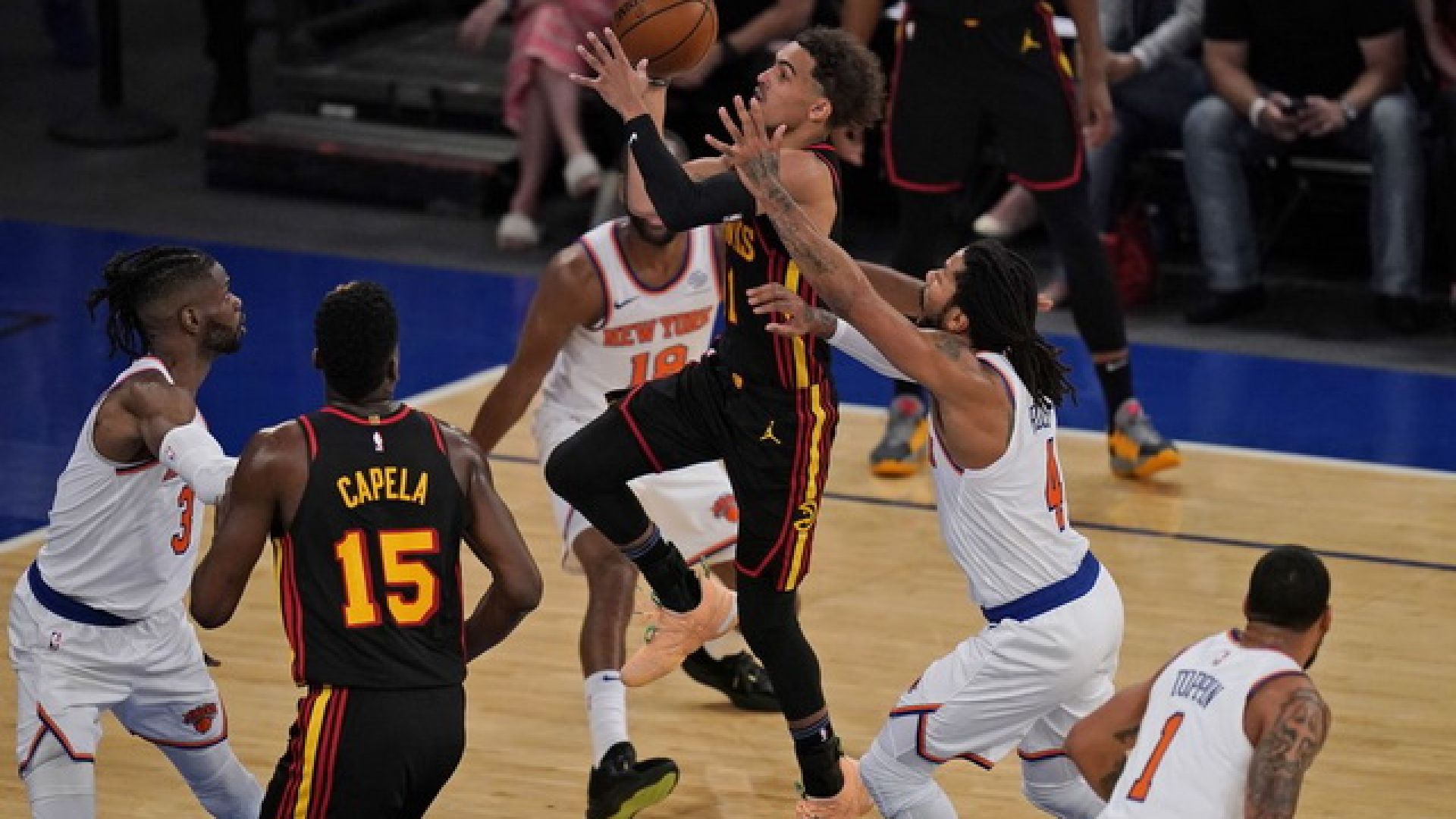 Με τον Τρε Γιανγκ να κάνει… όργια και να πετυχαίνει το καλάθι της νίκης, εννέα δέκατα πριν το φινάλε της αναμέτρησης, οι Χοκς… άλωσαν την Νέα Υόρκη και μπροστά σε 15.000 φίλους των Νικς, επικράτησαν με 107-105.