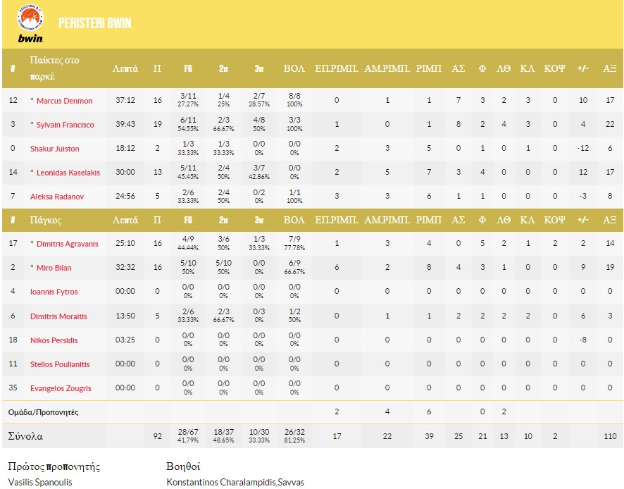 Τα δεκάλεπτα: 12-20, 37-40, 64-59, 81-81 (κ.δ.), 92-88 (ΠΑΡΑΤΑΣΗ)