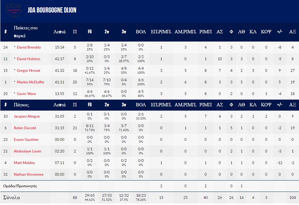 Από την άλλη για τη Ντιζόν πρώτος σκόρερ ήταν ο Ντικοτέ με 21 πόντους.