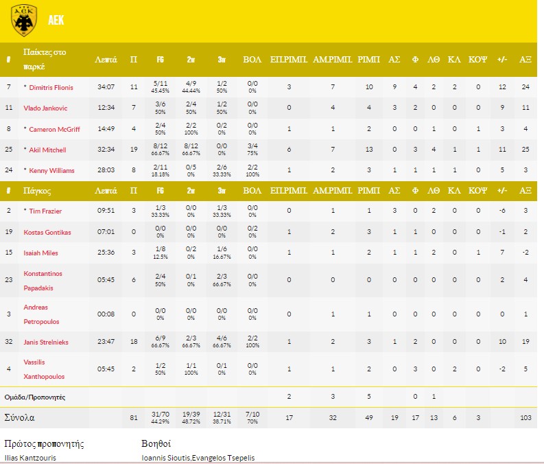 Η μεγαλύτερη διαφορά: +10 για την ΑΕΚ (το τελικό σκορ 71-81)