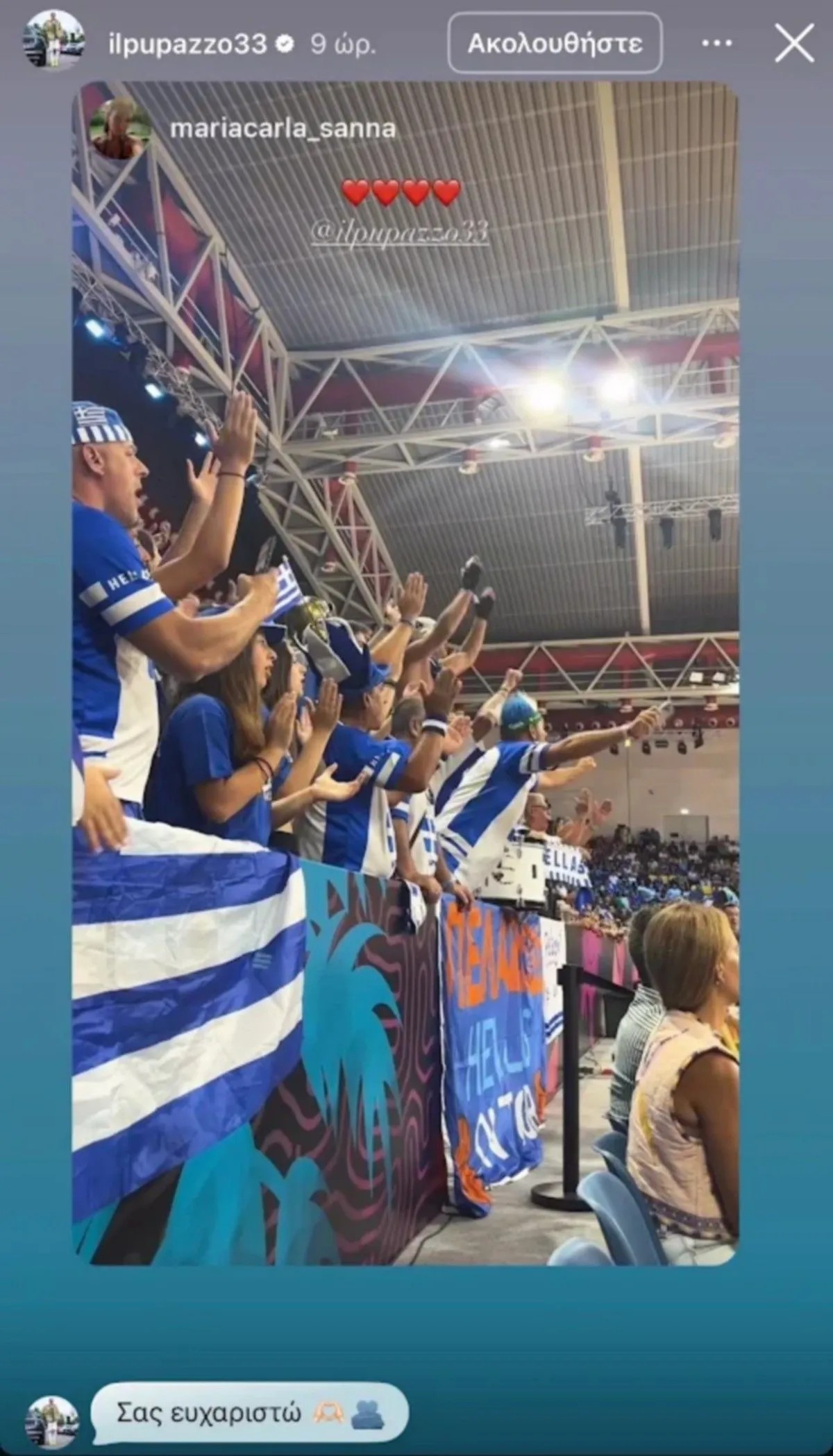 Ο ιταλός φόργουορντ αναδημοσίευσε στον προσωπικό του λογαριασμό στα social media, το εν λόγω σύνθημα και έγραψε στα ελληνικά “Σας ευχαριστώ”.