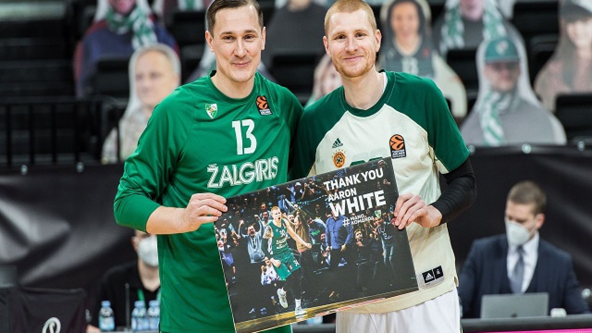 Η Ζαλγκίρις τίμησε τον Άαρον Γουάιτ πριν την έναρξη του αγώνα απέναντι στον Παναθηναϊκό για την διετή παρουσία του στο Λιθουανικό σύλλογο, δια χειρός Παούλιους Γιανκούνας, ο οποίος παρέδωσε στον Ουάιτ μια εικόνα η οποία έγραφε «Thank you Aaron White» (Ευχαριστούμε Άαρον Γυάιτ).