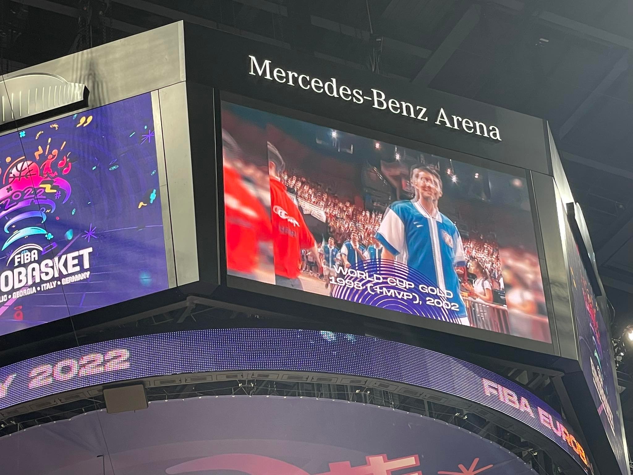Σερβία και Ιταλία κοντράρονται για μία θέση στα προημιτελικά του Eurobasket, με την FIBA να τιμά, μέσω των matrix της «Mercedes – Benz Arena», έναν θρύλο του σερβικού μπάσκετ, τον Ντέγιαν Μποντιρόγκα.