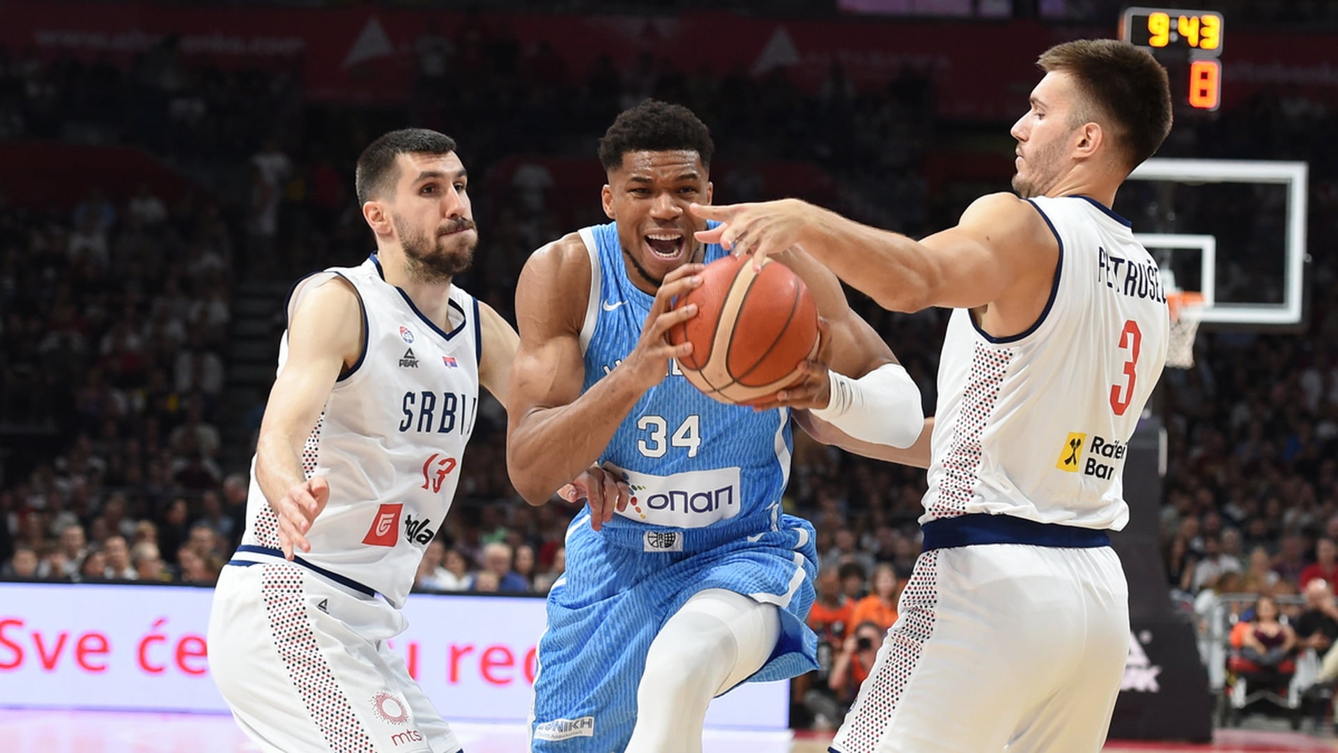 Εντυπωσιακό μπλοκ του Μιλουτίνοβ στον Αντετοκούνμπο και αποθέωση από τους Σέρβους φιλάθλους (vid)
