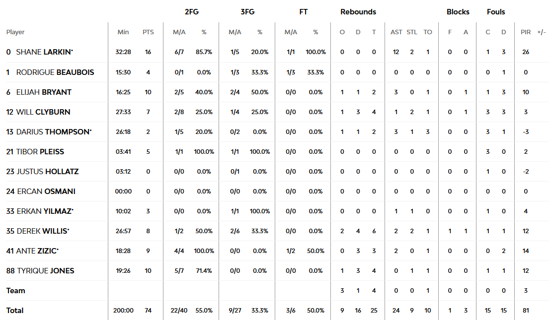 Δεκάλεπτα: 23-15, 52-39, 75-63, 95-86