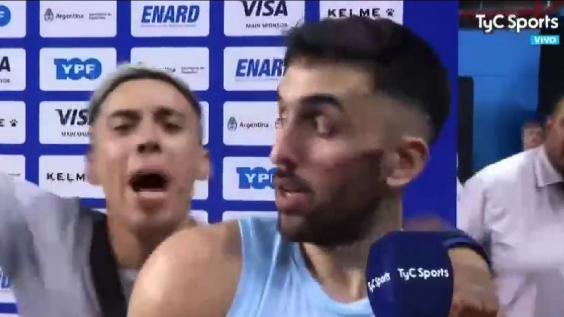 Η Αργεντινή έχει νικήσει τον Καναδά με 83-72 και ο Καμπάτσο πάει για δηλώσεις στη μικτή ζώνη, αλλά ένας φίλος της Εθνικής Ομάδας έχει... «τρελαθεί» και με τις φωνές του τρομάζει τον σταρ του Ερυθρού Αστέρα.