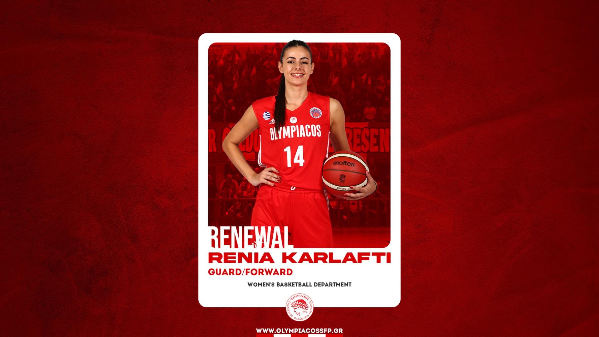 Ο Ολυμπιακός ανακοίνωσε την ανανέωση της συνεργασίας του με την Ρένια Καρλάφτη, η οποία υπέγραψε συμβόλαιο διετούς διάρκειας.