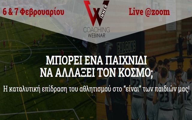Ηλεκτρονικό σεμινάριο στις 6 και 7 Φεβρουαρίου, με θέμα την καταλυτική επίδραση του αθλητισμού στο «είναι» των παιδιών, πραγματοποιεί το Coaching WebinAir και ο Ηλίας Καραπιπέρης, με την συμμετοχή πλήθος ομιλητών.