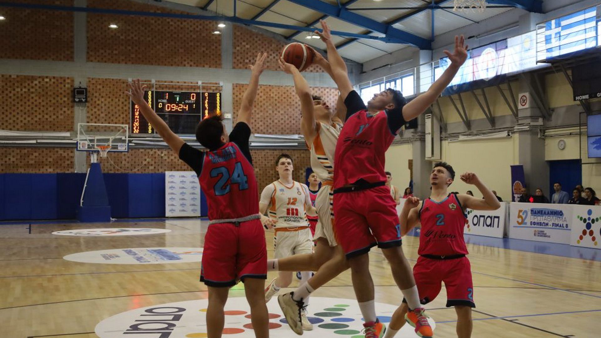 Το τρίποντο του Μπουρνελέ στο φινάλε της αναμέτρησης, ήταν αυτό που χάρισε την νίκη στον Ολυμπιακό με 66-65 απέναντι στη ΔΕΚΑ, στο πλαίσιο της πρεμιέρας του Final 8 του Πανελληνίου Πρωταθλήματος Εφήβων.