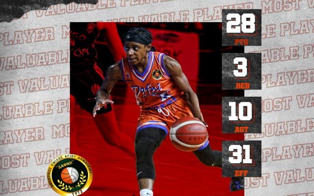 Η Τσάσιτι Πάτερσον ήταν ασταμάτητη, στην νίκη της Δάφνης Αγίου Δημητρίου επί του ΠΑΣ Γιάννινα, έχοντας 28 πόντους, 3 ριμπάουντ, 10 ασίστ, 4 κλεψίματα και 31 στο σύστημα αξιολόγησης, αριθμοί που της έδωσαν πανάξια το βραβείο της MVP της 2ης αγωνιστικής.