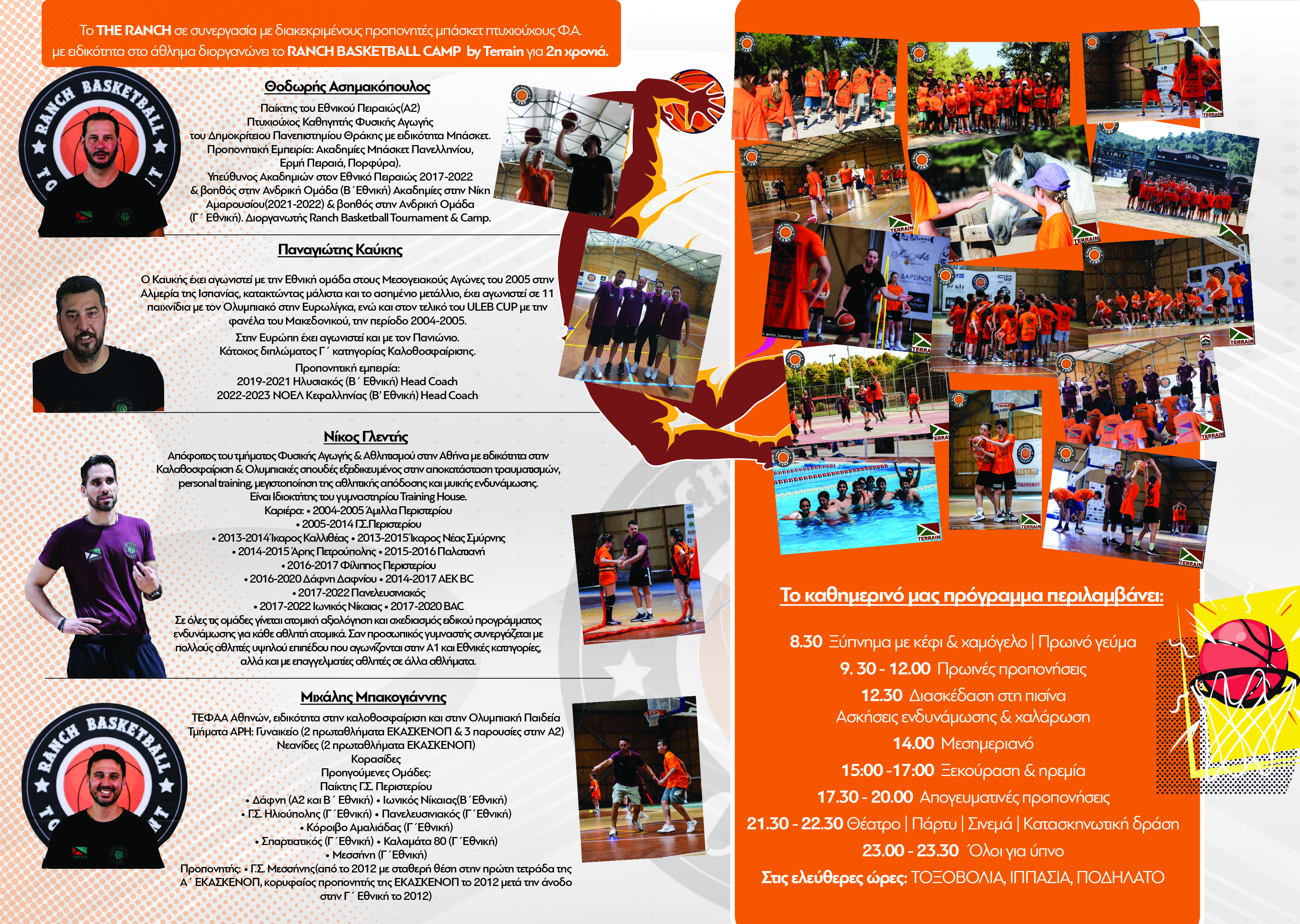 Υπεύθυνος προπονητής του 2ου Ranch Basketball Camp θα είναι ο Θεόδωρος Ασημακόπουλος. Προπονητές του Αθλητικού Προγράμματος θα είναι ο Παναγιώτης Καυκής, ο Μιχάλης Μπακογιάννης, ο Σταύρος Αποστόλου και ο Γιώργος Σπυρόπουλος.