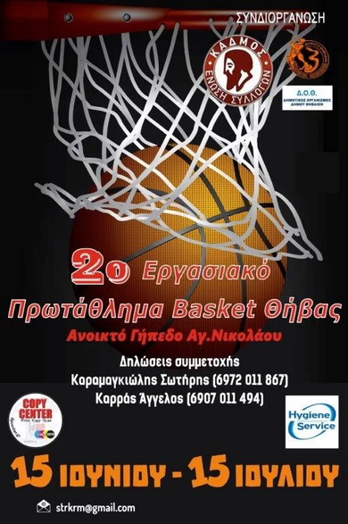 Όλα έτοιμα για το 2ο Εργασιακό Πρωτάθλημα Μπάσκετ Θήβας, που θα πραγματοποιηθεί από 15 Ιουνίου ως 15 Ιουλίου.