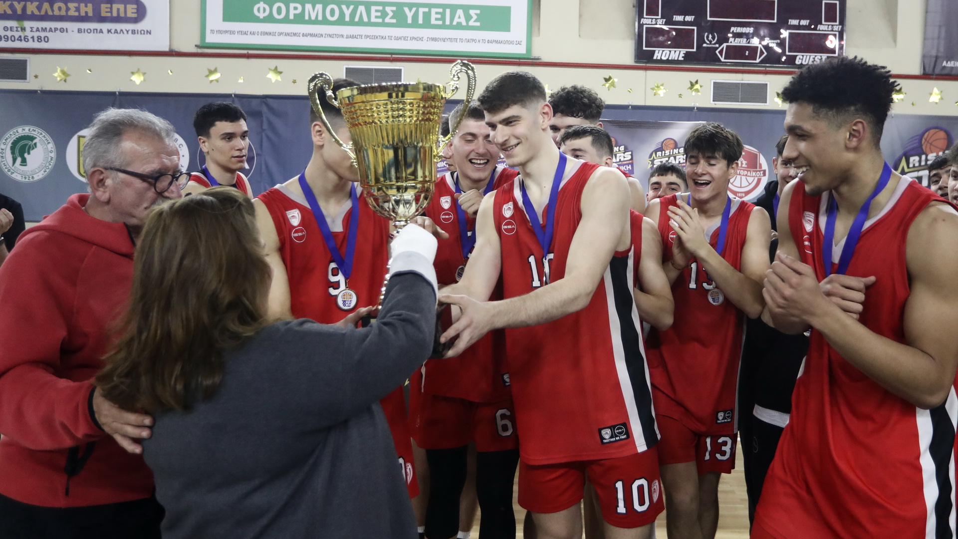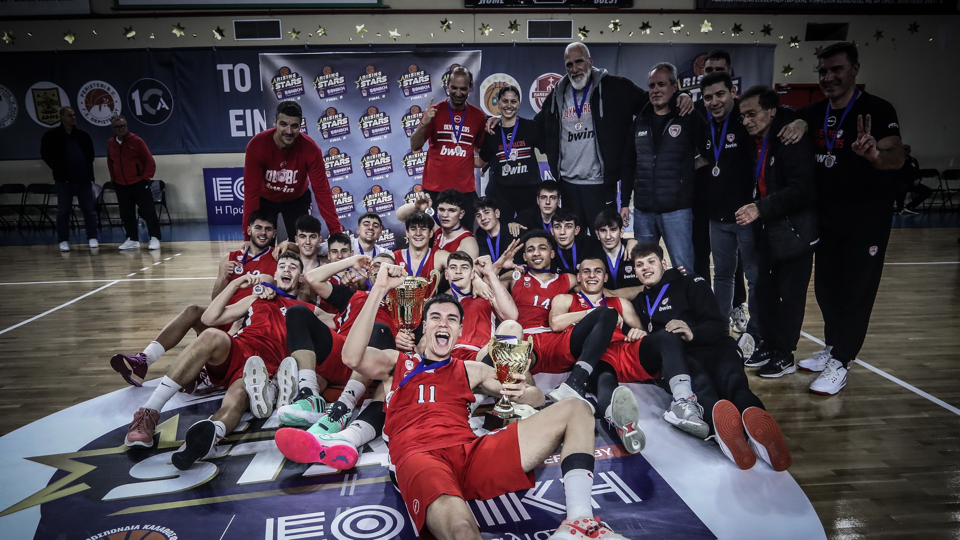 Οι «ερυθρόλευκοι πανηγύρισαν με το τρόπαιο που πήραν από τα χέρια της Μαρίας Κόρακα, ενώ τα μετάλλια έδωσε στους πρωταθλητές ο Γενικός Γραμματέας της Ελληνικής Ομοσπονδίας Καλαθοσφαίρισης, Νίκος Νικολόπουλος.