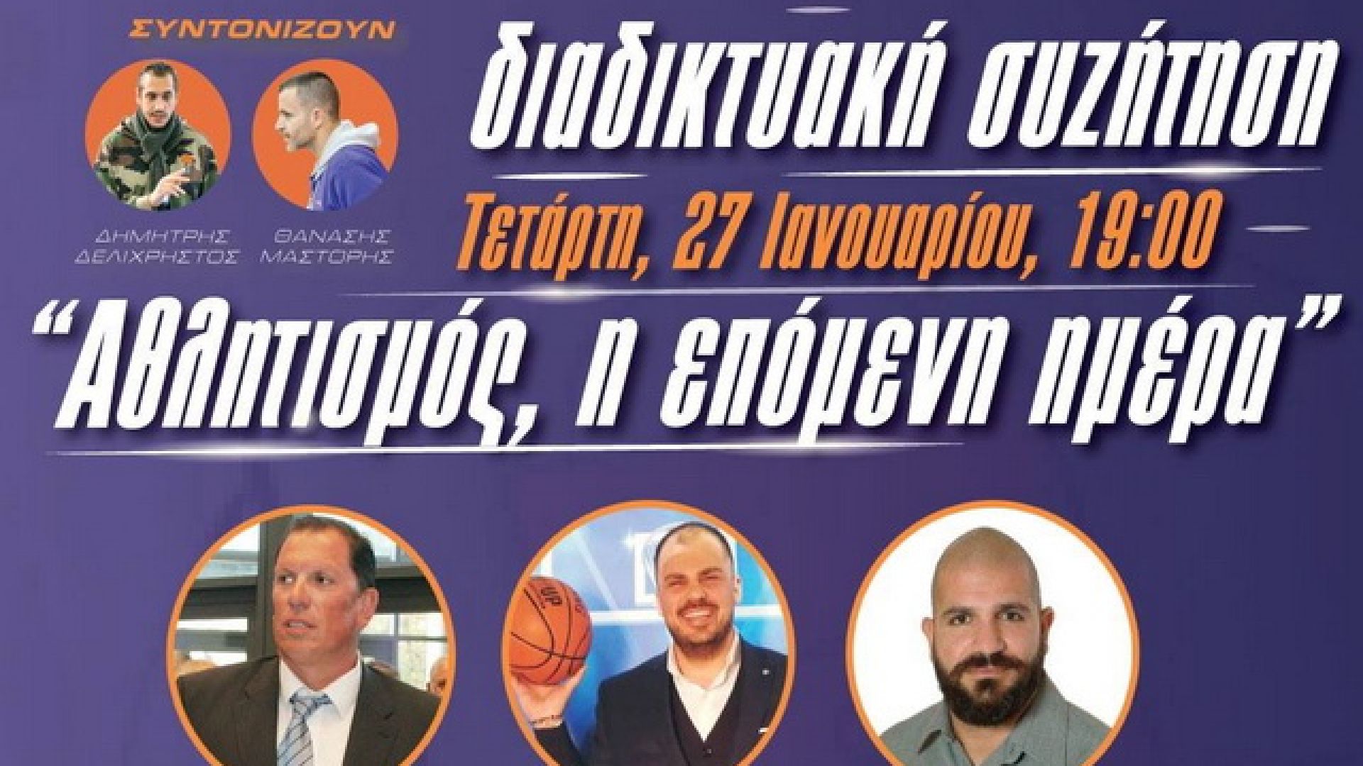 Διαδυκτιακή Συζήτηση "ΑΘΛΗΤΙΣΜΟΣ, η επόμενη ημέρα" Τετάρτη, 27 Ιανουαρίου, 19:00 Συμμετεχουν: 🔸Νίκος...