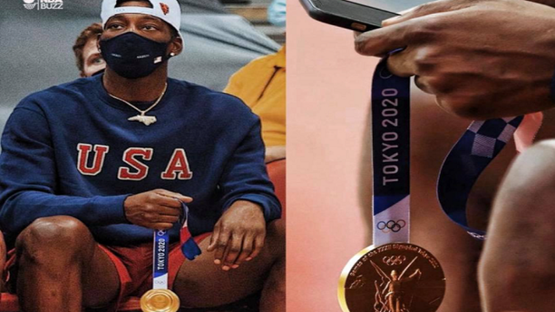 Ο Μπαμ Αντεμπάγιο δεν αποχωρίζεται καθόλου το χρυσό μετάλλιο που κέρδισε με την Εθνική των ΗΠΑ στους Ολυμπιακούς Αγώνες στο Τόκιο.