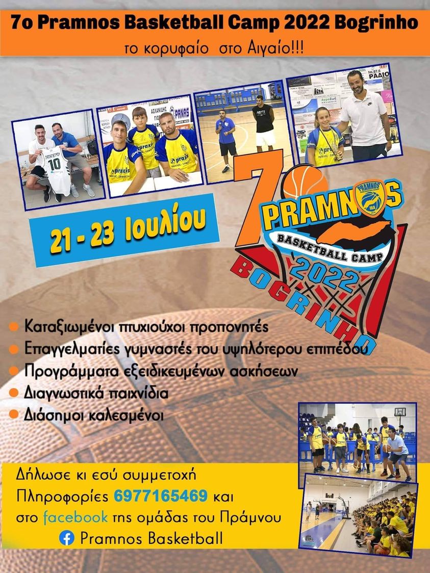 Όλα όσα πρέπει να ξέρετε για το 7ο Pramnos Basketball Camp 2022 Bogrinho, το οποίο θα διεξαχθεί στις 21-22 και 23 Ιουλίου 2022, στις εγκαταστάσεις του κλειστού γυμναστηρίου Αγίου Κηρύκου Ικαρίας.