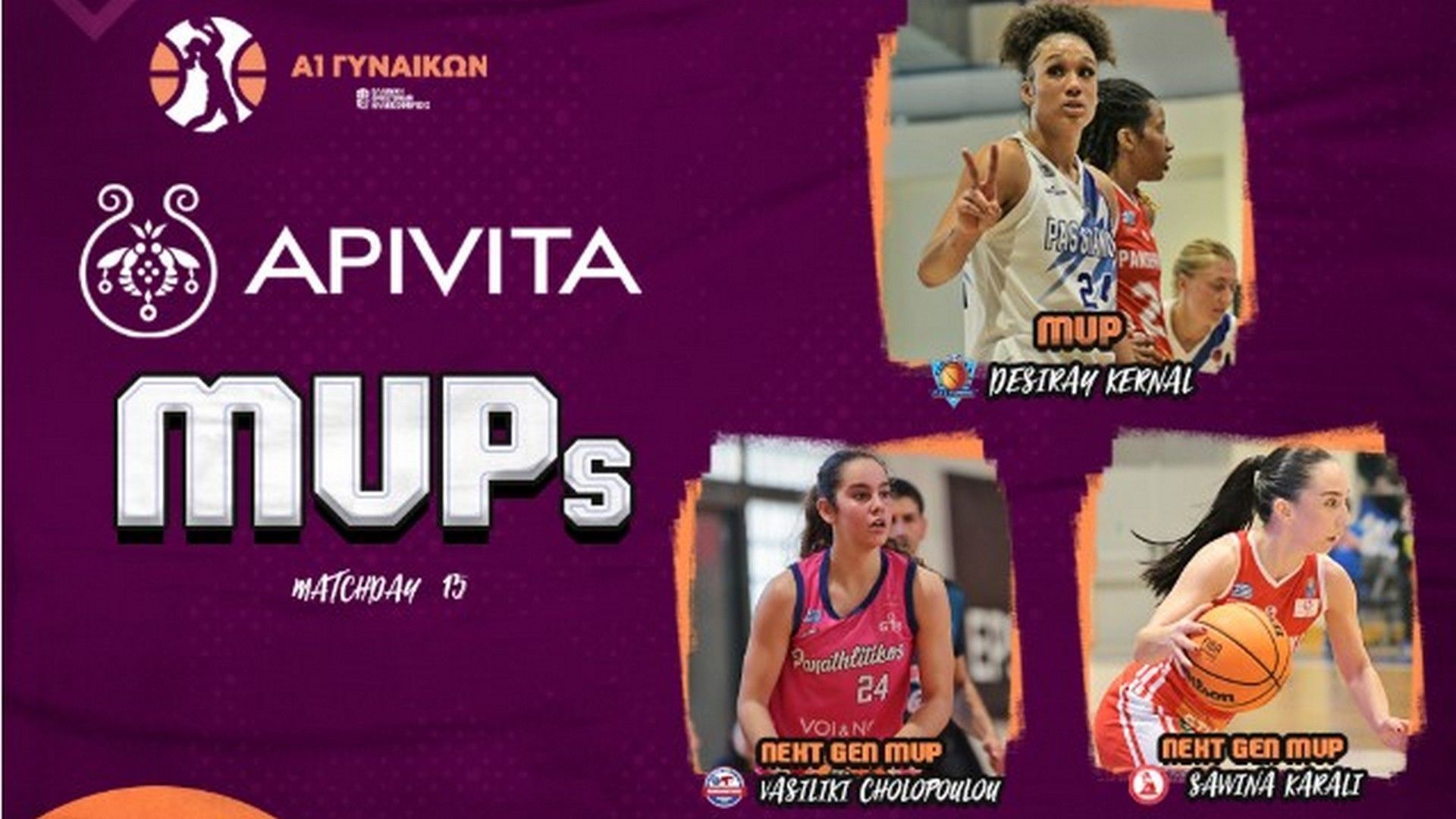 Α1 γυναικών - Οι Κέρναλ, Χωλοπούλου και Καράλη αναδείχθηκαν MVP της 15ης αγωνιστικής