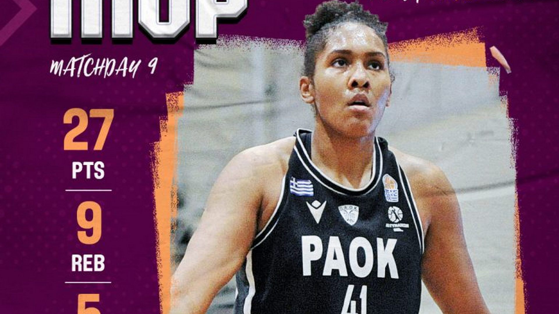 Α1 γυναικών: Η Χόμπι του ΠΑΟΚ MVP της 9ης αγωνιστικής - Μοιρασμένο σε Σακελλαρίου και Χατζηλεοντή το Next Gen MVP