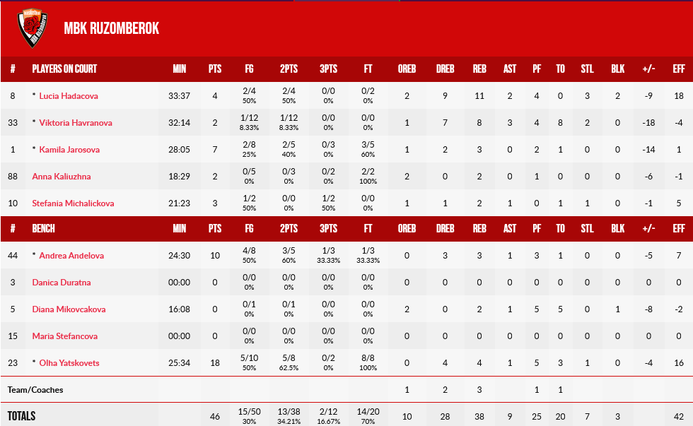 Για την Ρουζομπερόκ, 18 πόντους είχε η Γιάσκοβετς και 10 η Αντέλοβα.