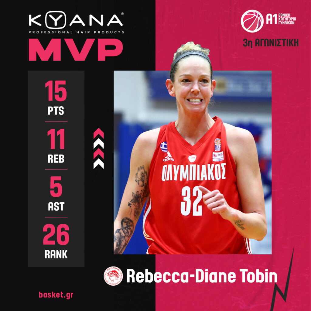 Με το εξ αναβολής παιχνίδι του Πρωτέα με τον Ολυμπιακό, ολοκληρώθηκε η 3η αγωνιστική της Α1 Γυναικών, με την Ρεμπέκα Τόμπιν να αναδεικνύεται MVP.