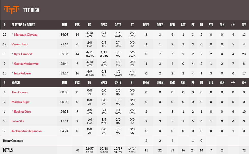 Για την Ρίγα, η Πουλβέρ είχε 16 πόντους, με τις Κλαβό και Λάμπερτ να έχουν από 14.