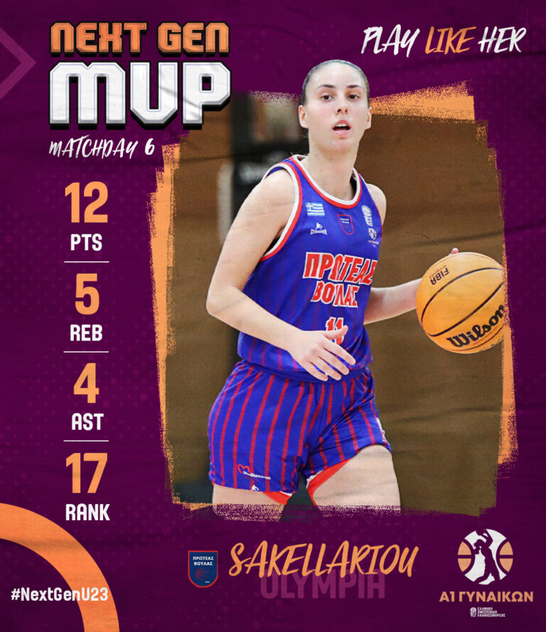 Η Τζέιτς Λόβιλ αναδείχθηκε πολυτιμότερη παίκτρια της 6ης αγωνιστικής της Α1 γυναικών, ενώ η ταλαντούχα Ολυμπία Σακελαρίου ήταν η Next Gen MVP της ίδιας αγωνιστικής.