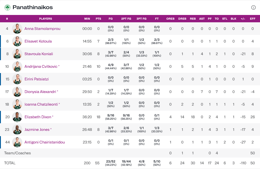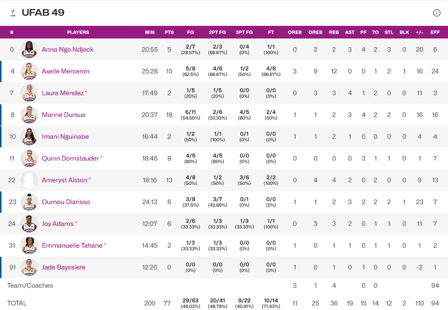 Εξαιρετική εμφάνιση από την Ντίξον, με 18 πόντους και ισάριθμα ριμπάουντ, με την Τσβίτκοβιτς να προσθέτει 10 πόντους, ενώ για την Ανζέ, η Ντούρσους πέτυχε 18 πόντους, με την Μερσερόν να κάνει double – double με 15 πόντους και 12 ριμπάουντ.