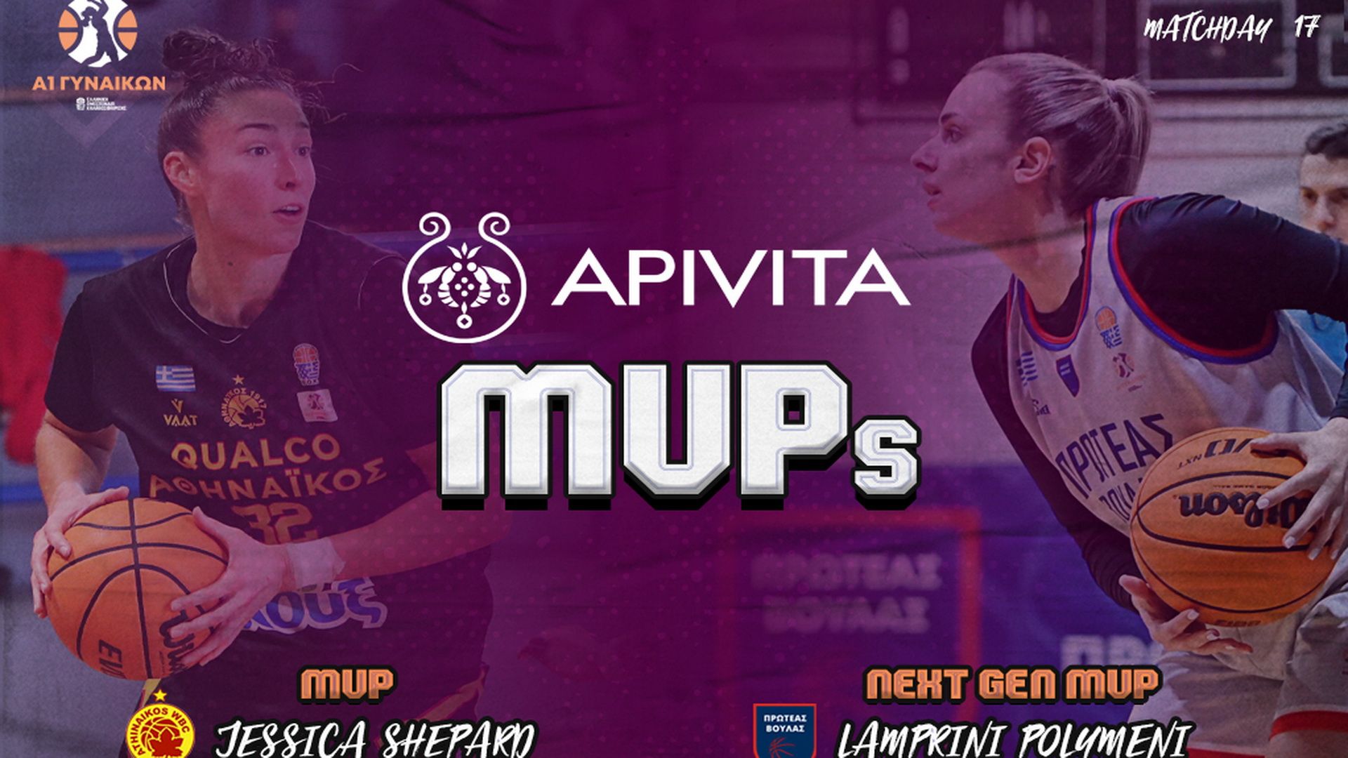 Η Τζέσικα Σέπαρντ η οποία έχει βαλθεί να σπάσει όλα τα ρεκόρ, είναι η Apivita MVP της 17ης Αγωνιστικής και είναι η 7η φορά που αναδεικνύεται η πολυτιμότερη της ημέρας στο φετινό πρωτάθλημα. Η σέντερ του Αθηναϊκού Qualco στην νίκη της ομάδας της με 97-77 επί του Παναθλητικού είχε 25 πόντους, 21 ριμπάουντ, 5 ασίστ, 1 κλέψιμο έχοντας 40 στο σύστημα αξιολόγησης σε 38’31’’.