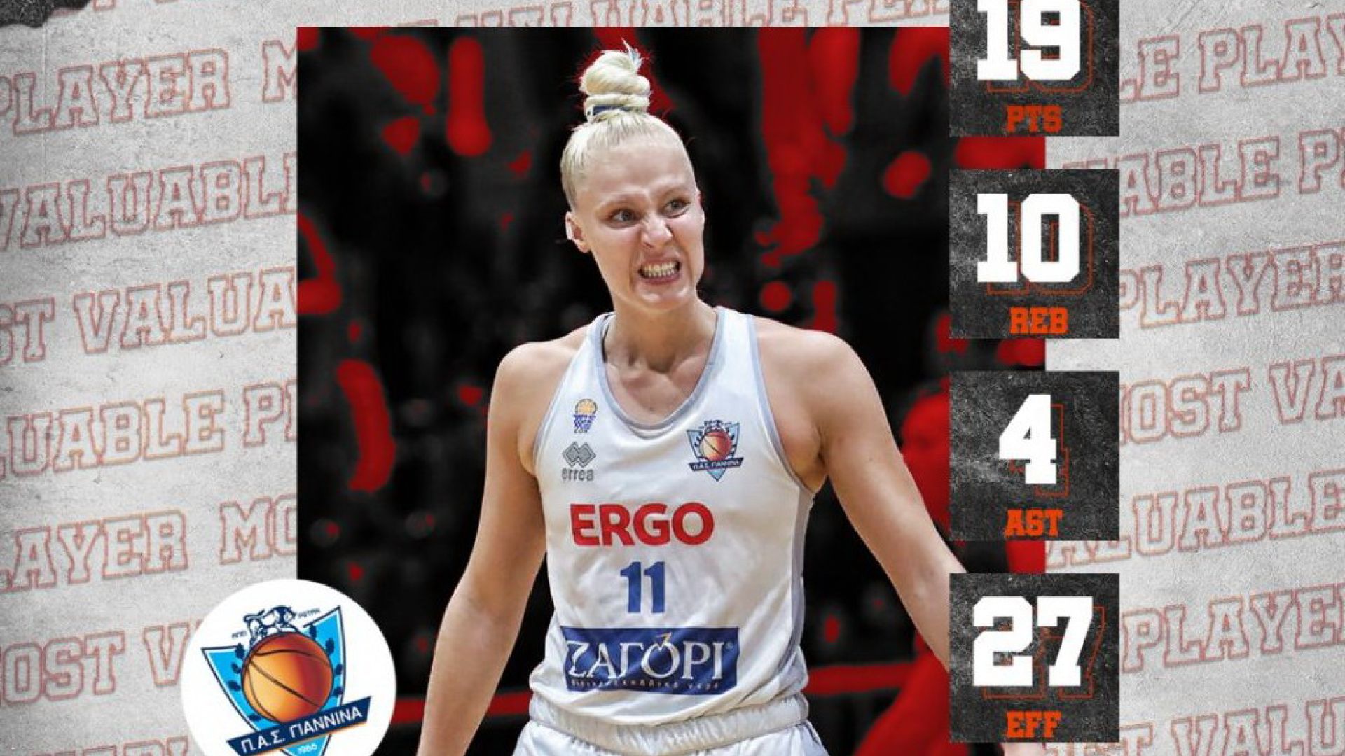 Η Ιζαμπέλα Σλιμ, με 19 πόντους, 10 ριμπάουντ, τέσσερις ασίστ, δύο κλεψίματα και ισάριθμα κοψίματα, βοήθησε τον ΠΑΣ Γιάννινα να πάρει την πρώτη του νίκη στο πρωτάθλημα, απέναντι στον ΟΑ Χανίων, με την Ολλανδή φόργουορντ να συγκεντρώνει 27 βαθμούς στο σύστημα ranking και να κατακτά το βραβείο της κορυφαίας της 5ης αγωνιστικής της Α1 Γυναικών.