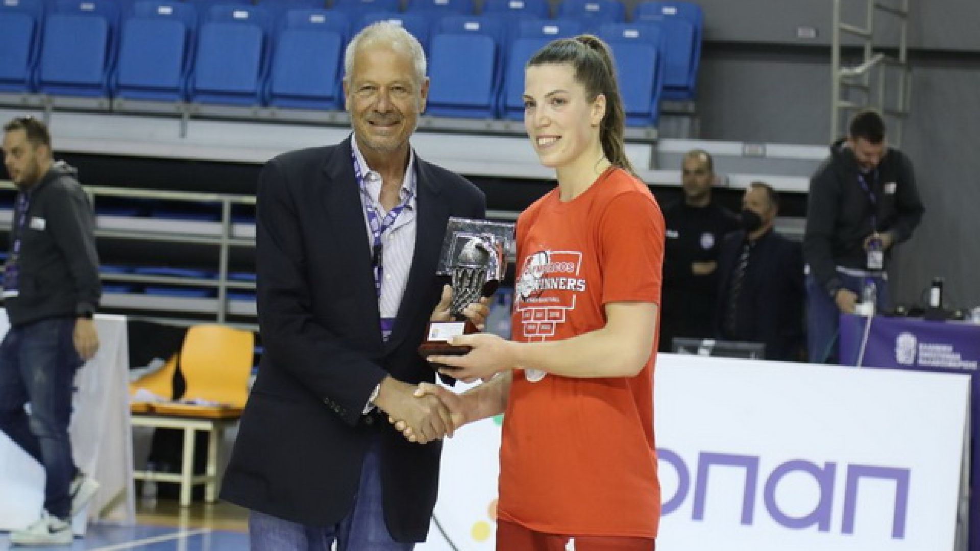 Την απονομή έκανε ο Χρήστος Βασιλειάδης, μέλος του ΔΣ της ΕΟΚ και Υπεύθυνος του μπάσκετ γυναικών.