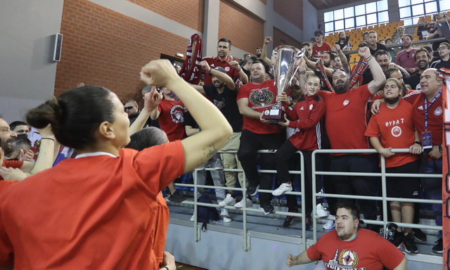 Δείτε φωτογραφικές στιγμές από τα όσα ακολούθησαν μετά το φινάλε του τελικού με την Ελευθερία Μοσχάτου καθώς και την απονομή του βαρύτιμου τροπαίου στην ομάδα του Πειραιά.
