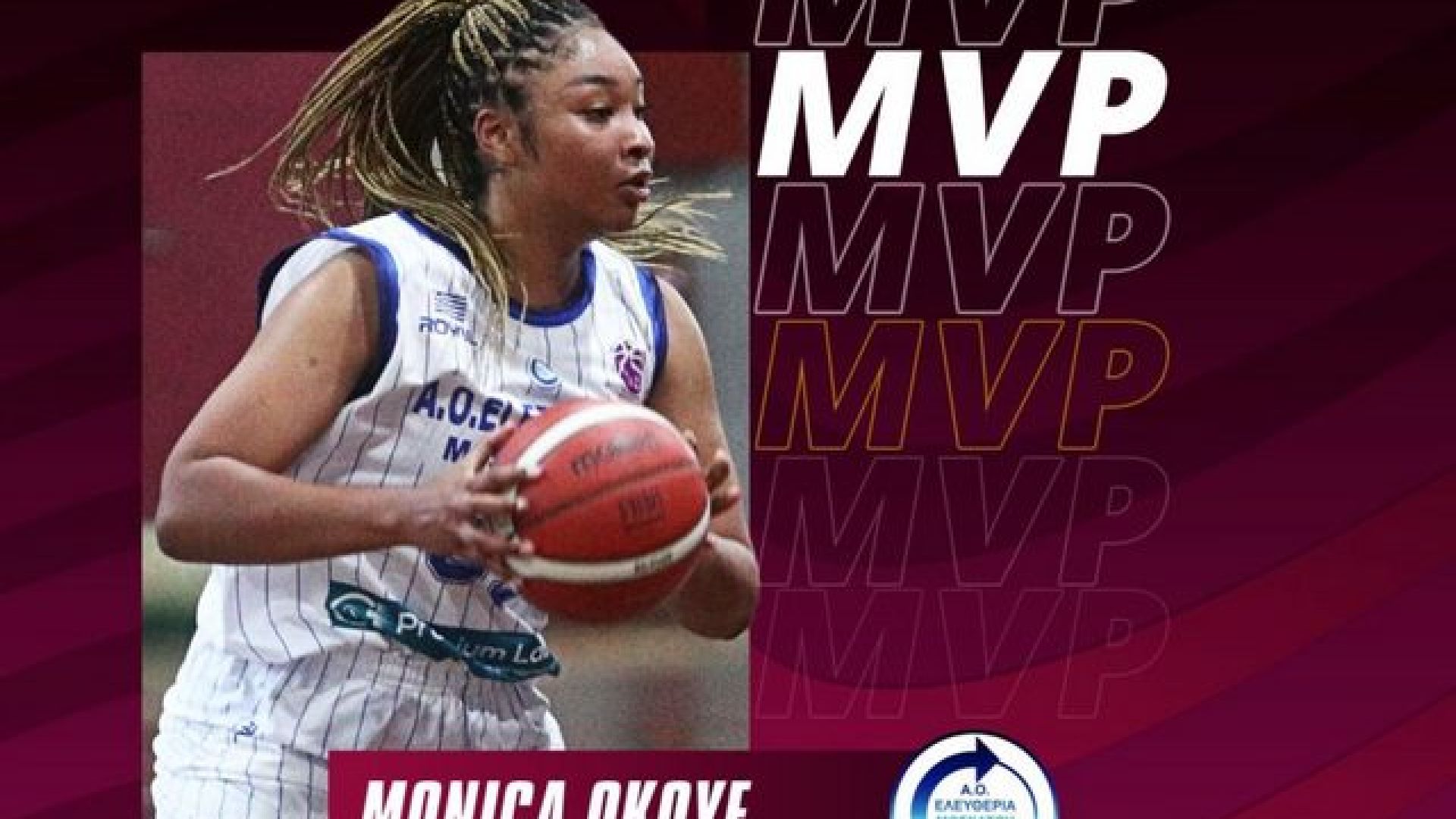 Η Μόνικα Οκόγιε ήταν η MVP της 6ης αγωνιστικής της Α1 γυναικών, με την αθλήτρια της Ελευθερίας Μοσχάτου να συγκεντρώνει 26 μονάδες στο σύστημα αξιολόγησης, ούσα η απόλυτη πρωταγωνίστρια στην εκτός έδρας νίκη της ομάδας της κόντρα στη Δάφνη Αγίου Δημητρίου.