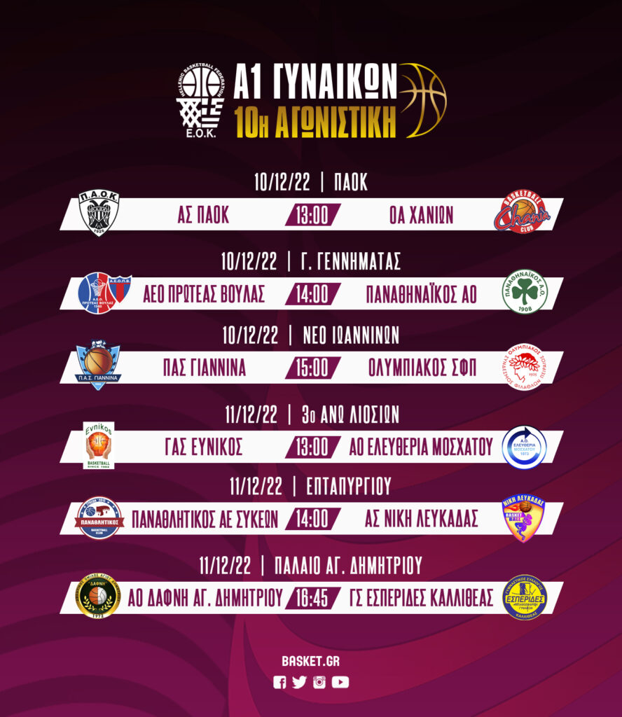 Αναλυτικά το πρόγραμμα της 10ης αγωνιστικής: