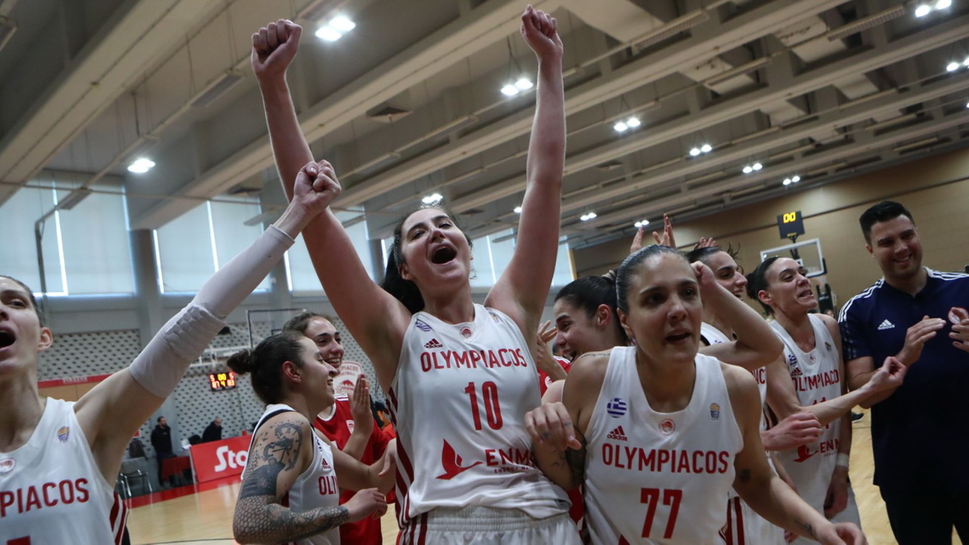 Γκούσταφσον με 22 πόντους και οκτώ ριμπάουντ και Αγιούσο με 21 πόντους, ήταν οι πρώτες σκόρερ του Ολυμπιακού, ενώ εξαιρετική εμφάνιση πραγματοποίησε και η Νικολοπούλου με 13 πόντους και 11 ασίστ, με την Σταμολάμπρου να έχει 11 πόντους.
