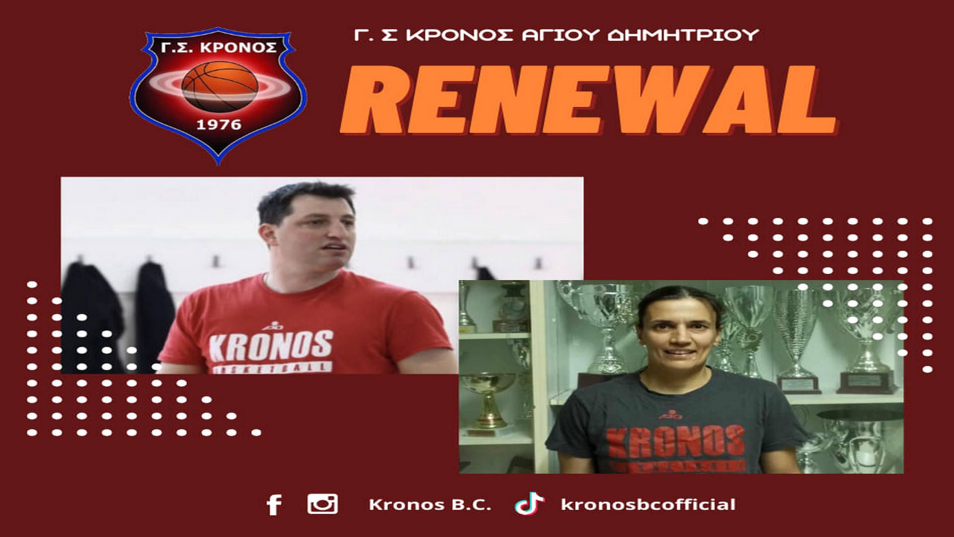 Ο Κρόνος Αγίου Δημητρίου ανακοίνωσε την ανανέωση συνεργασίας με τον προπονητή Σωκράτη Παπαζαφειρόπουλο και την βοηθό του Παναγιώτα Τσαμπούρη , όπως μάλιστα σας είχε ήδη ενημερώσει το Superbasket από τις 28 Ιουνίου.