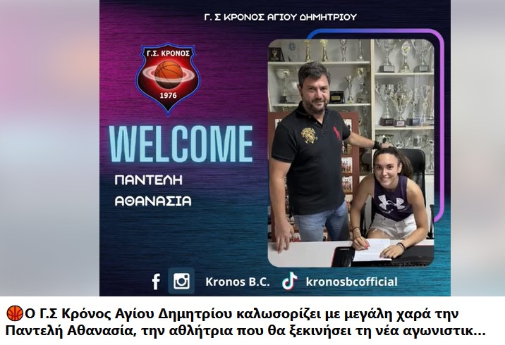 Την απόκτηση της σκόρερ, Αθανασίας Παντελή ανακοίνωσε ο Κρόνος Αγίου Δημητρίου, επιβεβαιώνοντας το ρεπορτάζ του Superbasket από τις 1/7/2024.