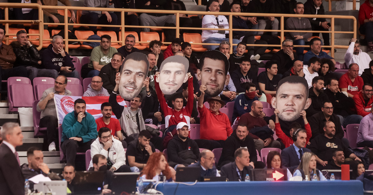 Ο Ολυμπιακός νίκησε τον Άρη στον προημιτελικό του Κυπέλλου με 82-51, με τους ερυθρόλευκους να απολαμβάνουν το παιχνίδι, αλλά και τον κόσμο να είναι στο πνεύμα των ημερών φτιάχνοντας μάσκες με πρόσωπα των αθλητών.