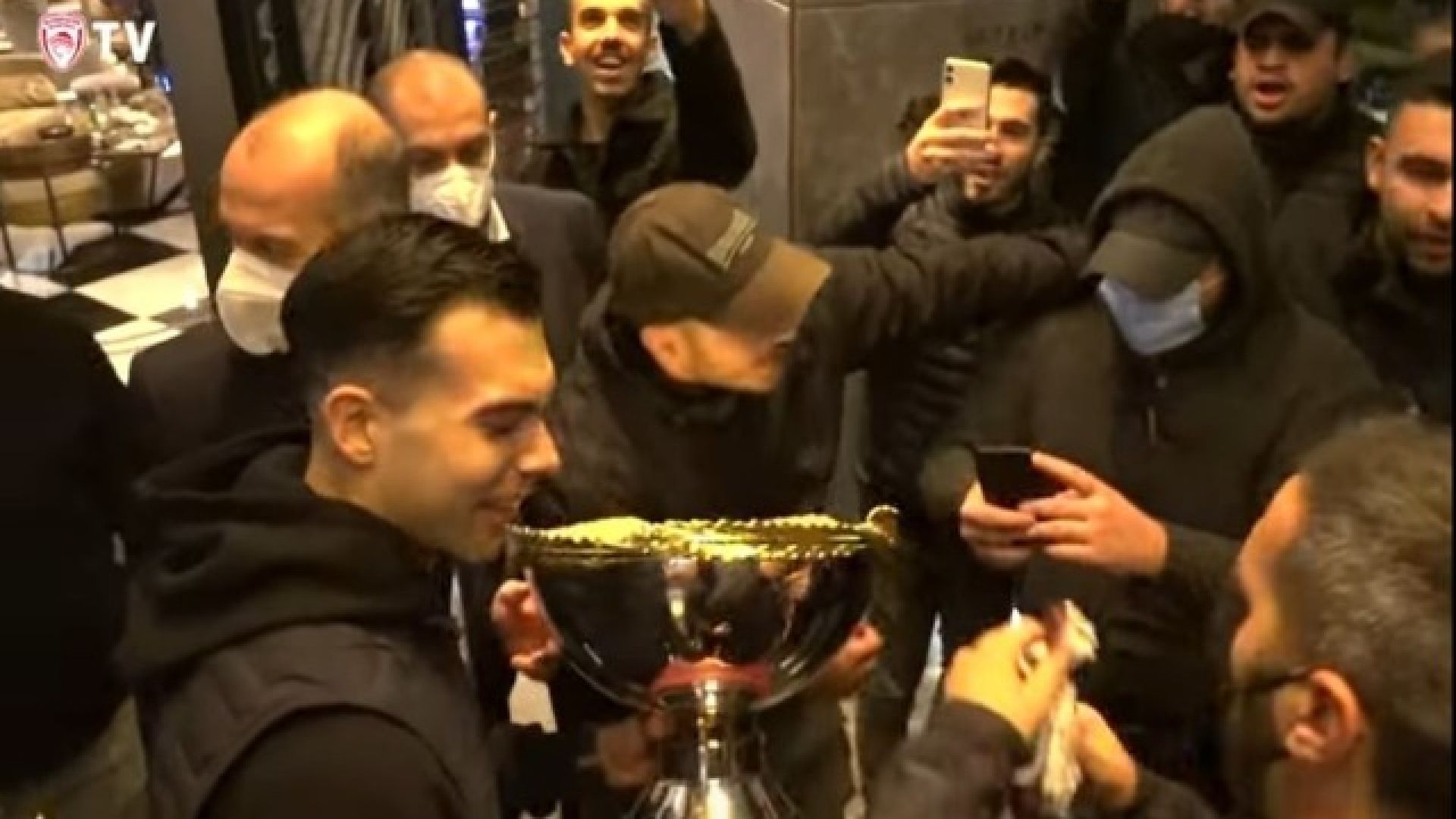 Ο Ολυμπιακός με βίντεο που ανέρτησε στο επίσημο κανάλι στο Youtube, παρουσίασε στιγμές από το ξέφρενο πάρτι που στήθηκε από τους φιλάθλους των ερυθρολεύκων έξω από την είσοδο του ξενοδοχείου, οι οποίοι αποθέωσαν τους παίκτες και τους ανθρώπους των Πειραιωτών, μετά την κατάκτηση του Κυπέλλου Ελλάδας (81-73).