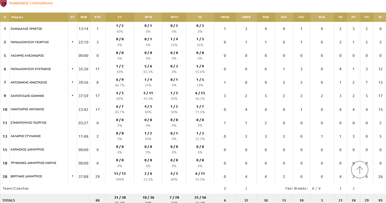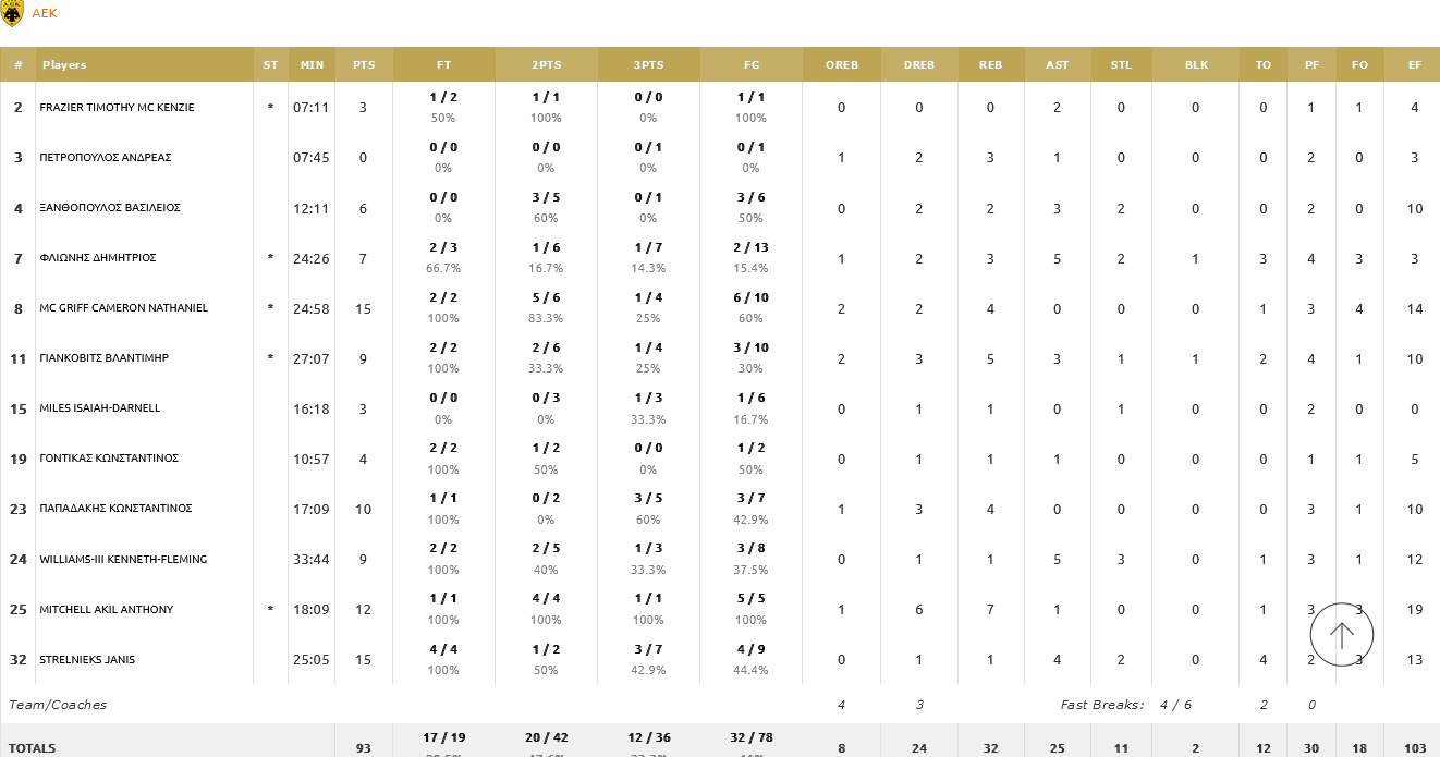 Ξεχώρισαν: ΜακΓκρίφ και Στρέλνιεκς είχαν από 15 πόντους έκαστος, με τον… άτυχο Μίτσελ να έχει 12 πόντους και τον Παπαδάκη 10. Για τον Πανιώνιο, από 17 πόντους είχαν Μάντζαρης και Σαχπατζίδης και 11 ο Παπαδιονυσίου.
