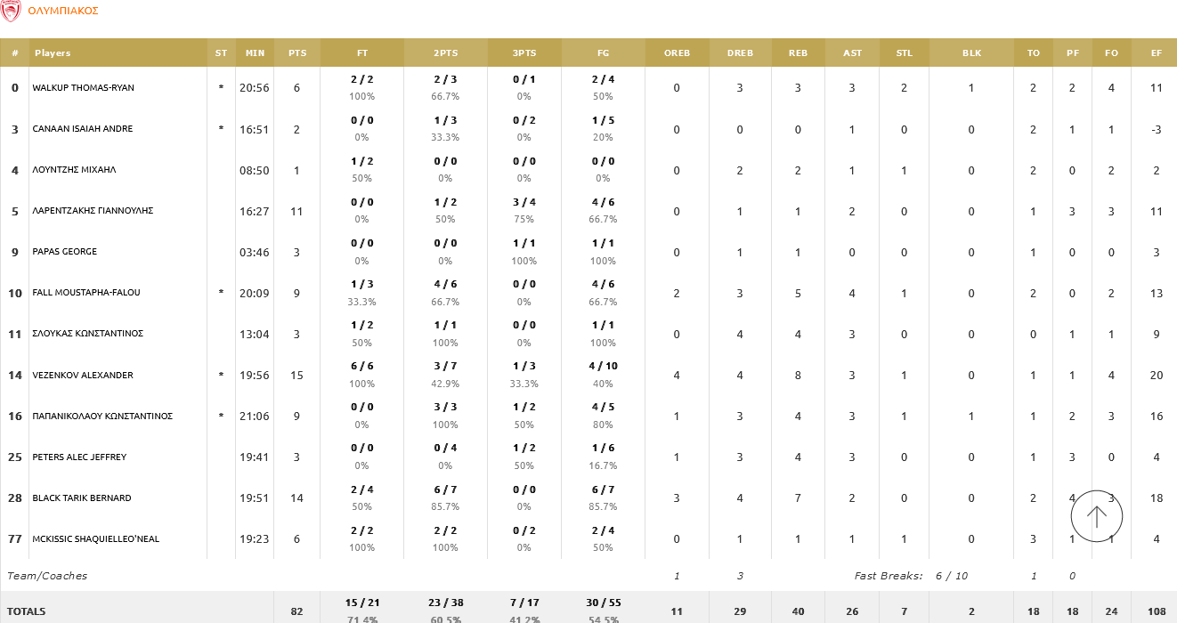 Η μεγαλύτερη διαφορά: +31 για τον Ολυμπιακό (82-51) στο 40’.