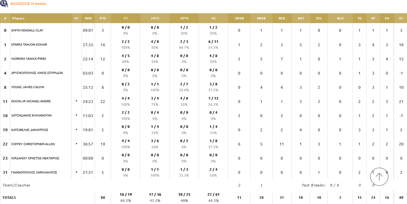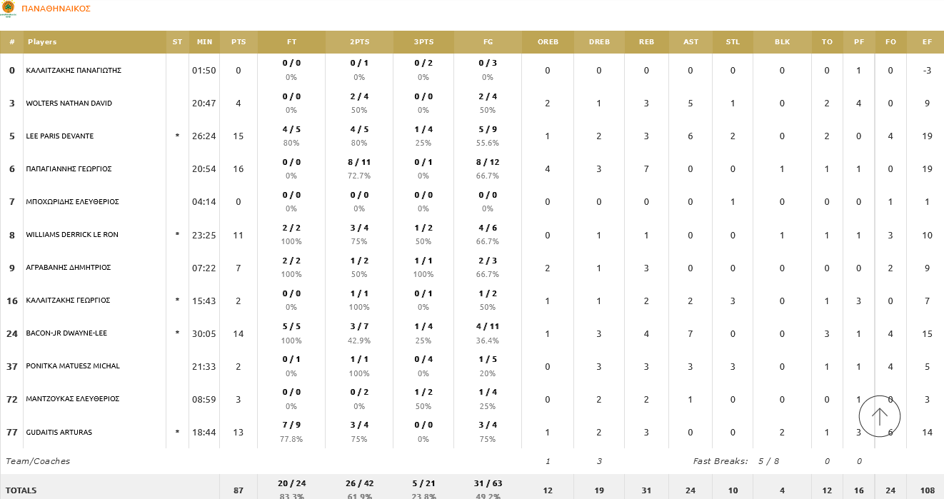 Ξεχώρισαν: 15 πόντους σημείωσε ο Πάρις, 14 ο Μπέικον και 13 ο Γκουντάιτις, ενώ για τον Κολοσσό, που επιχείρησε το ολικό comeback στην τελευταία περίοδο, ο Ντίξον είχε 22 πόντους, ο Σταρκς 16, ο Μορέιρα 12, ενώ ο Κόφι είχε 10 πόντους και 11 ριμπάουντ.