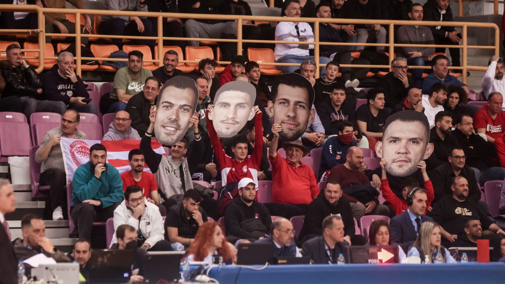 Ο Ολυμπιακός νίκησε τον Άρη στον προημιτελικό του Κυπέλλου με 82-51, με τους ερυθρόλευκους να απολαμβάνουν το παιχνίδι, αλλά και τον κόσμο να είναι στο πνεύμα των ημερών φτιάχνοντας μάσκες με πρόσωπα των αθλητών.