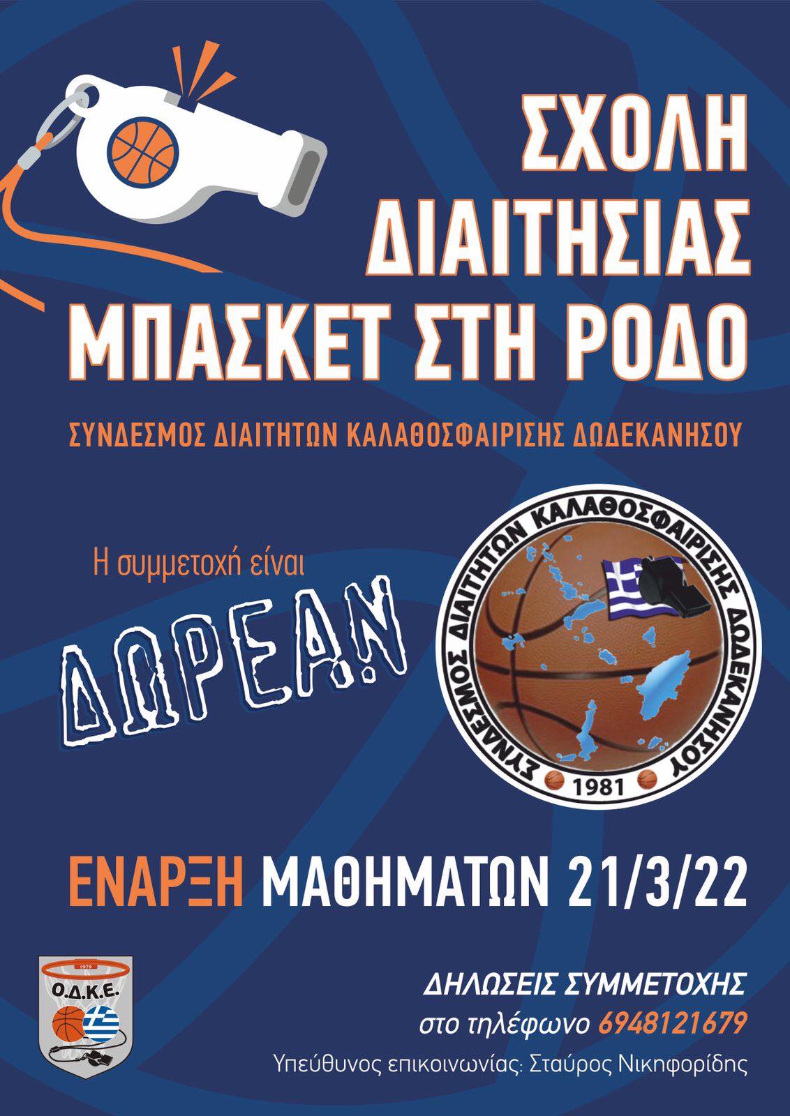 Την έναρξη λειτουργίας σχολής διαιτησίας μπάσκετ στη Ρόδο, έκανε γνωστή ο Σύνδεσμος Διαιτητών Καλαθοσφαίρισης Δωδεκανήσων.