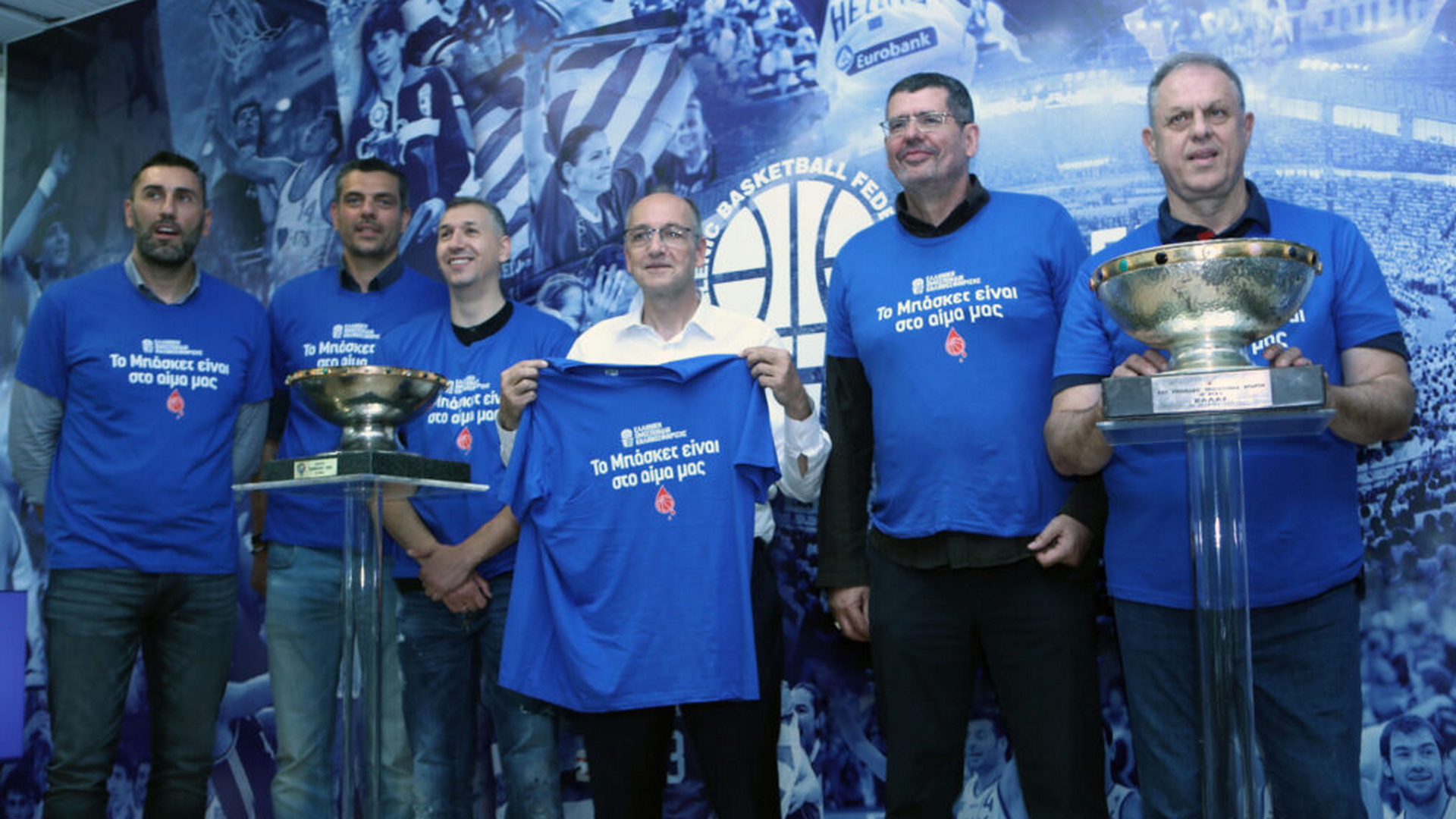 Οι δύο «χρυσές» γενιές του Ελληνικού μπάσκετ, αυτή του 1987 και αυτή του 2005, ενώθηκαν στα γραφεία της ΕΟΚ, ανήμερα της κατάκτησης του πρώτου ευρωπαϊκού χρυσού μεταλλίου, με αφορμή την αιμοδοσία που οργάνωσε η Ομοσπονδία.