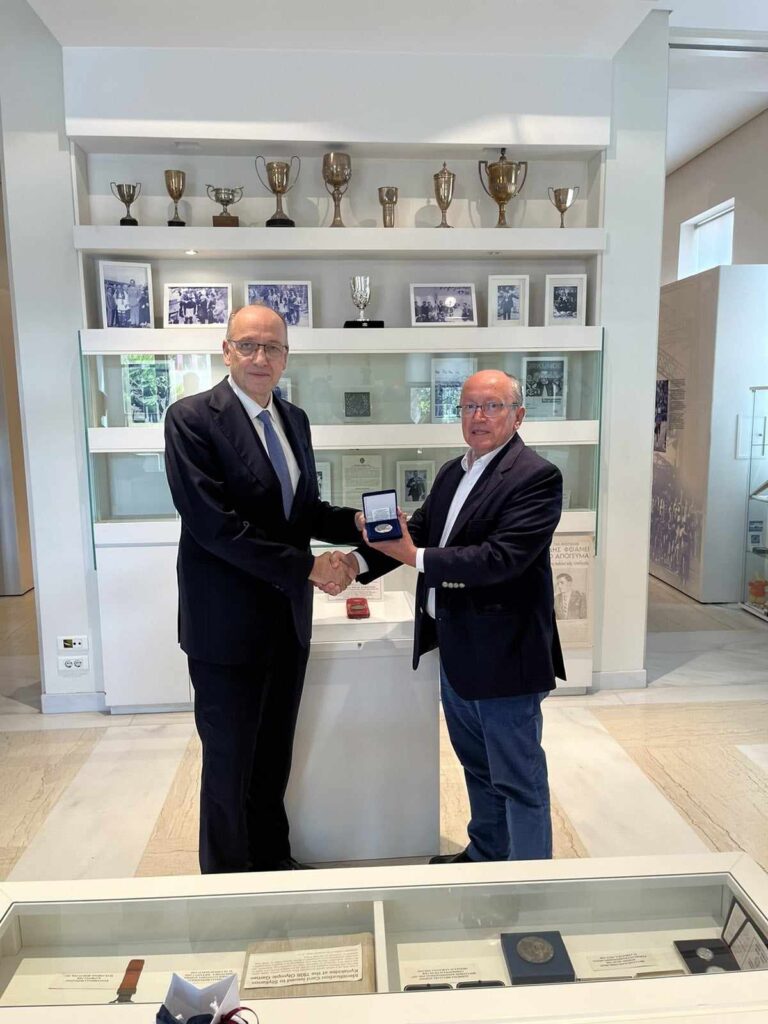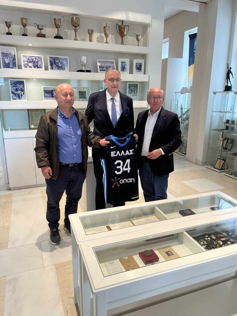 Μετά την ξενάφηση στο Μουσείο, υπήρξε και η ανταλλαγή κάποιων αναμνηστικών, με τον Πρόεδρο της ΕΟΚ να παραλαμβάνει ένα αντίγραφο του μεταλλίου του Σπύρου Λούη και να παραδίδει μια φανέλα της Εθνικής Ανδρών.