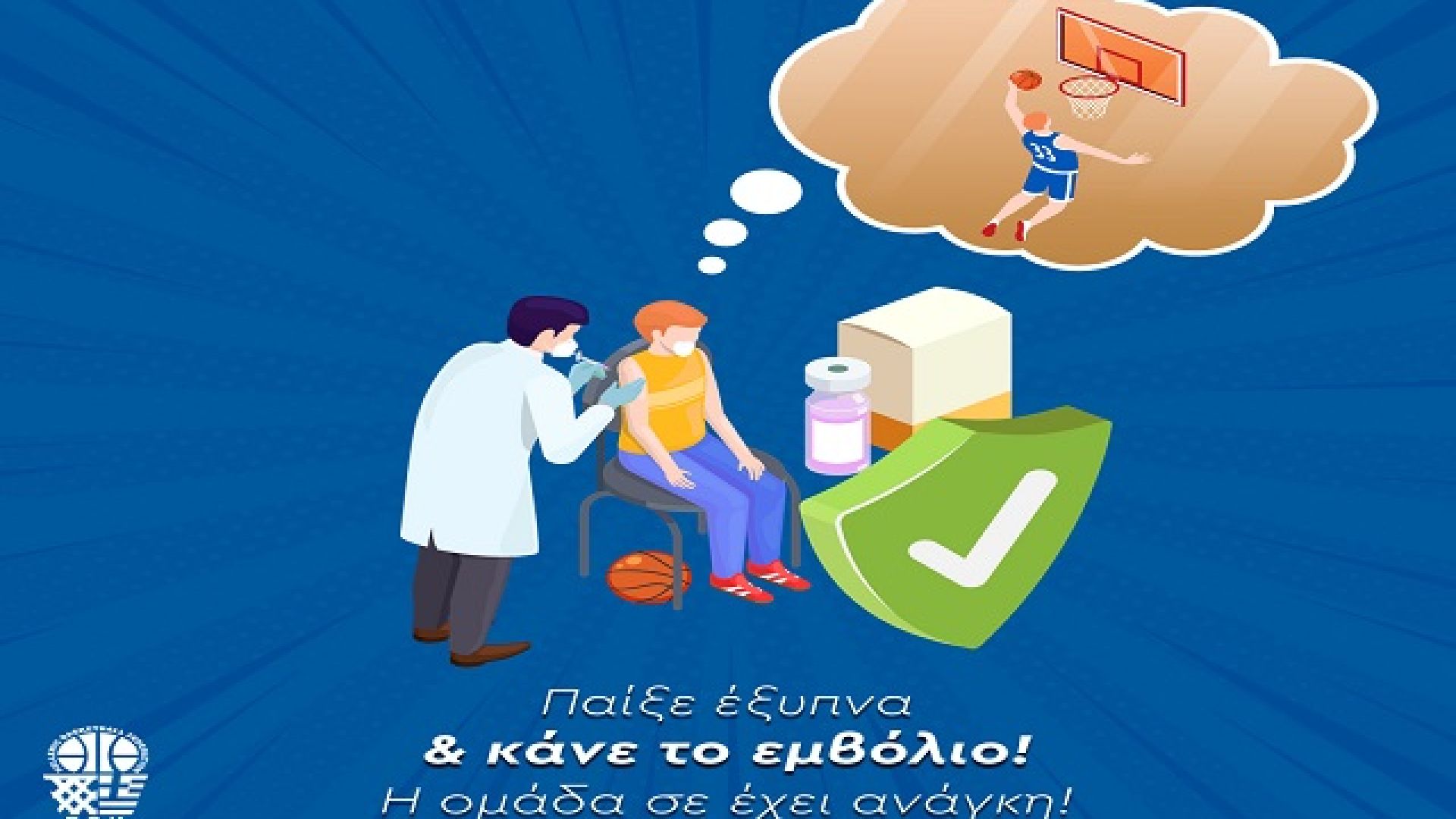 Την δική της καμπάνια για το εμβόλιο κατά του covid-19 κάνει η ΕΟΚ, που καλεί όλους του πολίτες και ιδιαίτερα όσους ασχολούνται με το μπάσκετ να κάνουν το εμβόλιο ώστε να προστατέψουν τους εαυτούς τους και τους υπόλοιπους.