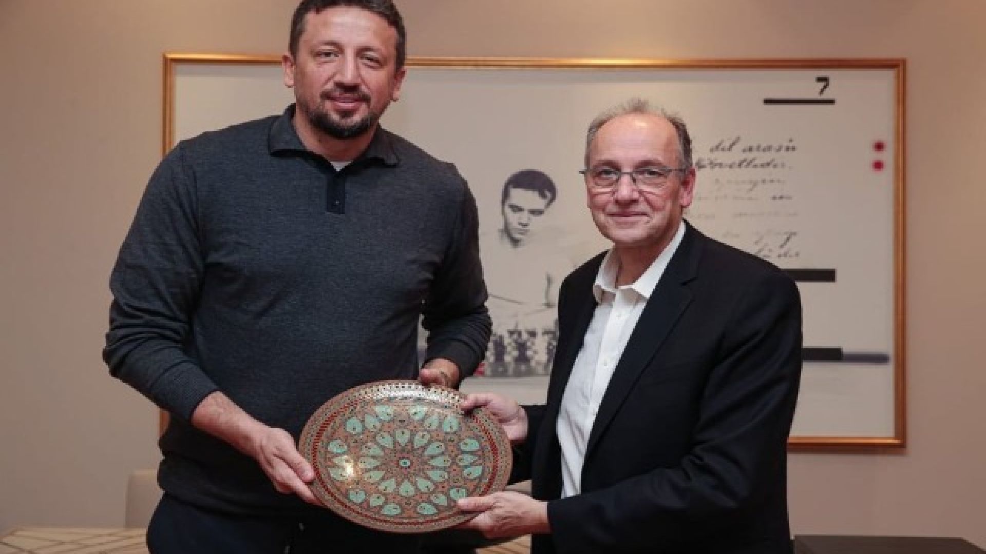 Οι δύο άνδρες συζήτησαν σε άριστο κλίμα, μοιράστηκαν ιδέες για το ευρωπαϊκό μπάσκετ και την περαιτέρω ανάπτυξή του και αντάλλαξαν αναμνηστικά.