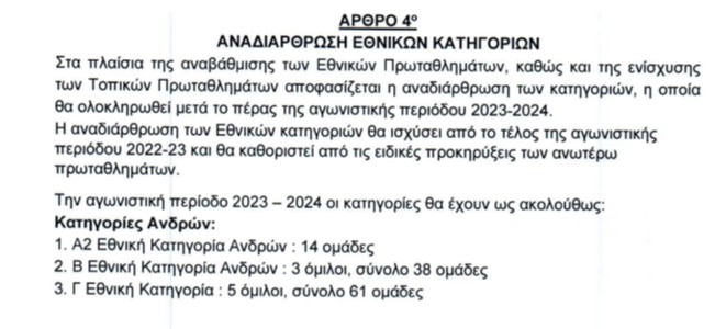 Αντίστοιχα στην Γ΄ Εθνική θα έχουμε 61 ομάδες χωρισμένες σε πέντε ομίλους την σεζόν 2023/24 και 56 ομάδες σε τέσσερις ομίλους, την σεζόν 2024/25.